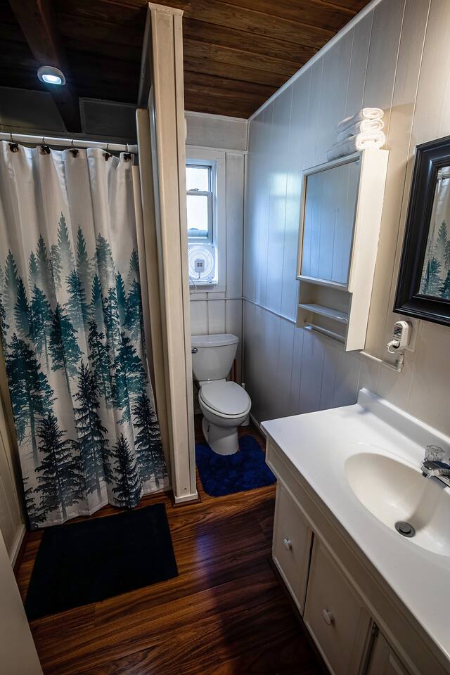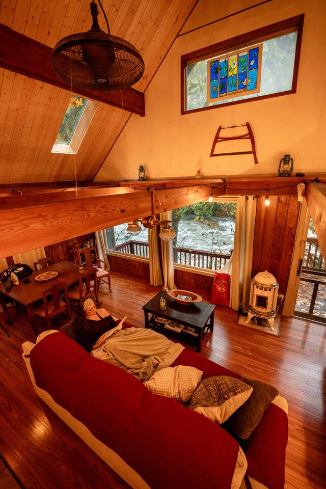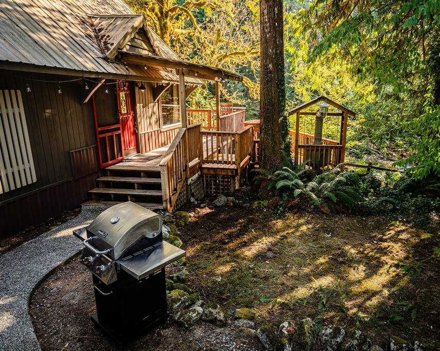 Guests can access the whole property with the exception of the utility sheds but should avoid going closer to the river than the deck railing and fencing for safety reasons. This property only hosts one rental, the cabin, which is exclusively for your use.