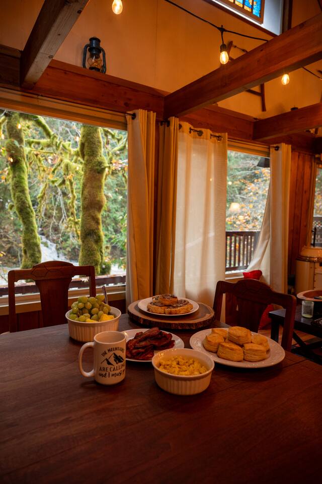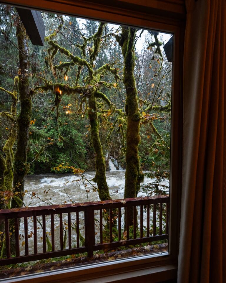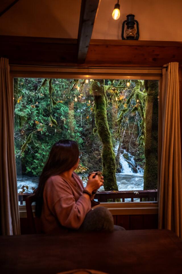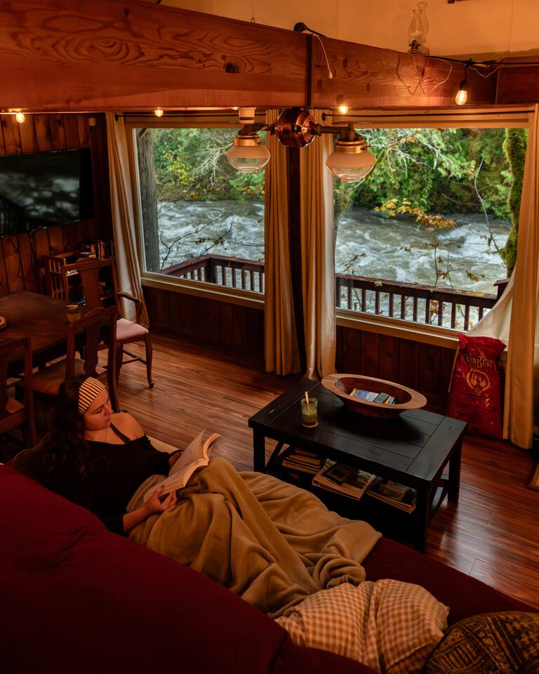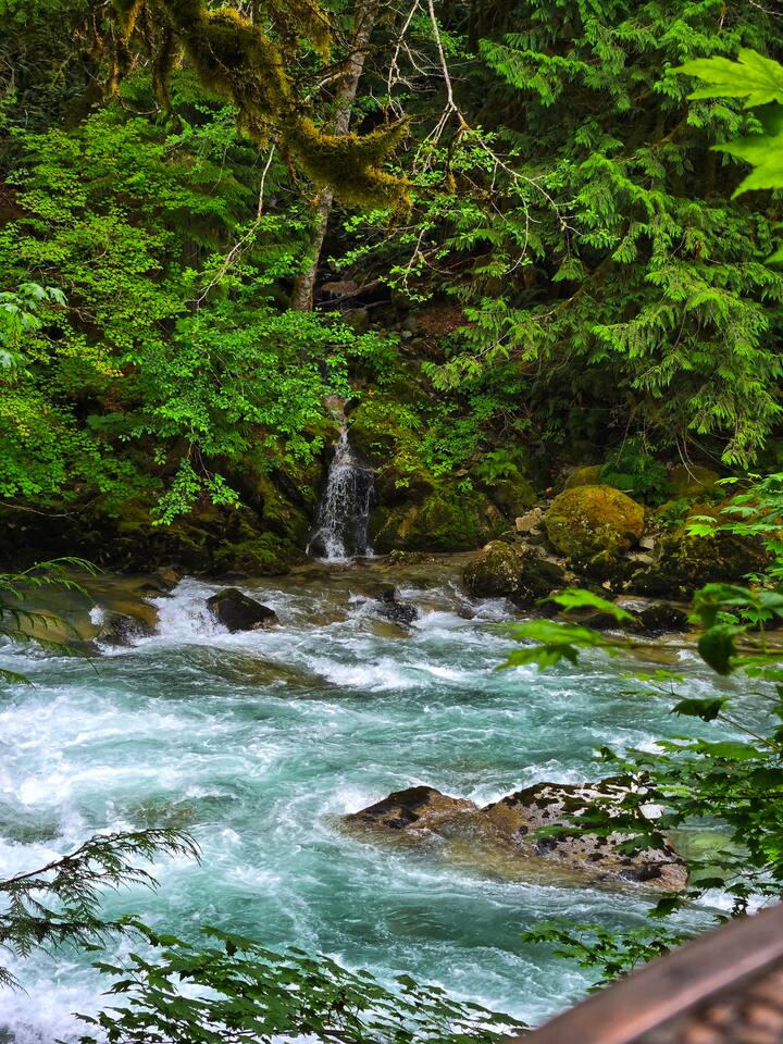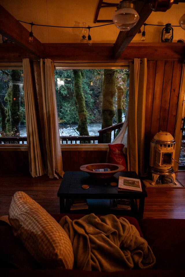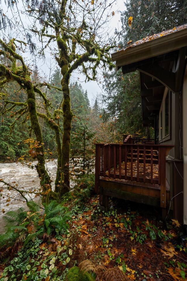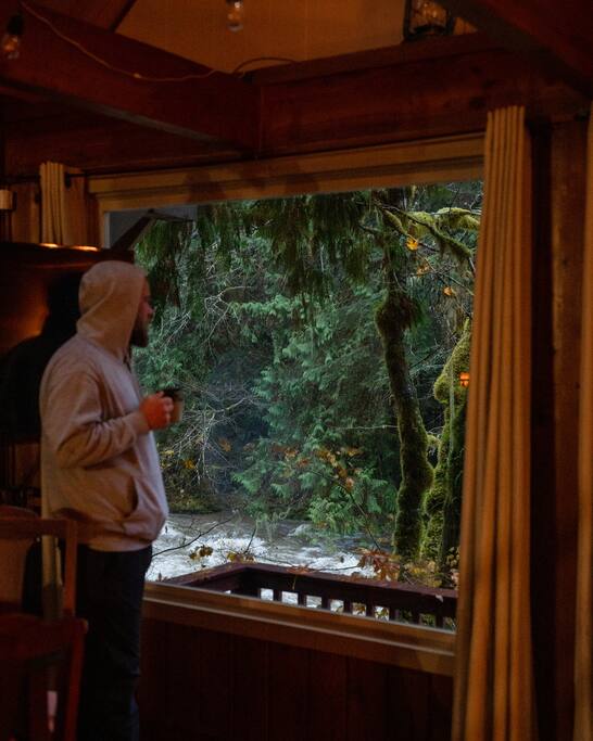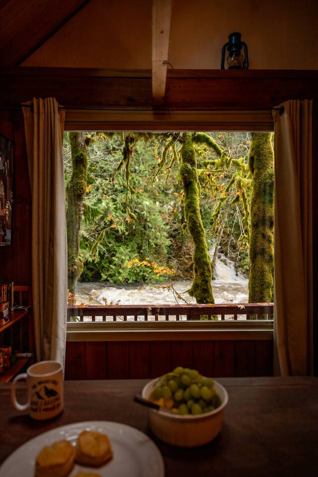 Tucked into a private nook of mature trees, enjoy a view of the Cascades River while you relax after exploring the incomparable North Cascades. Whether out on the deck experiencing the wild and scenic Cascade River with a morning coffee or under the stars from the 3 person wood fired hot tub, this is a river cabin like no other. Enjoy plenty of room for the family to stay comfortably with high speed internet, streaming entertainment and board games while maintaining the off-grid cabin feeling.