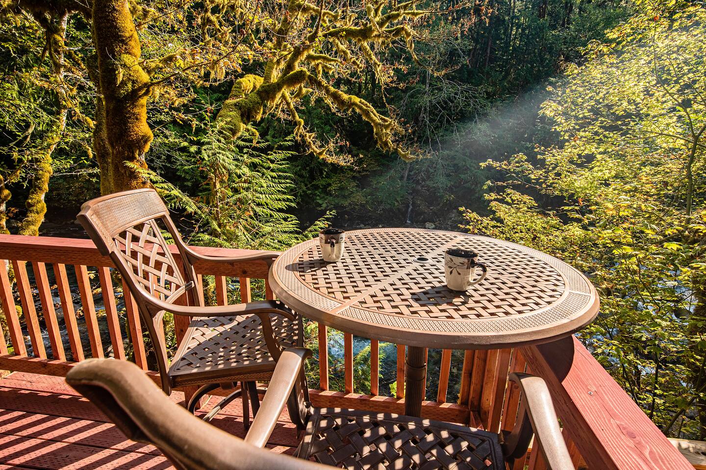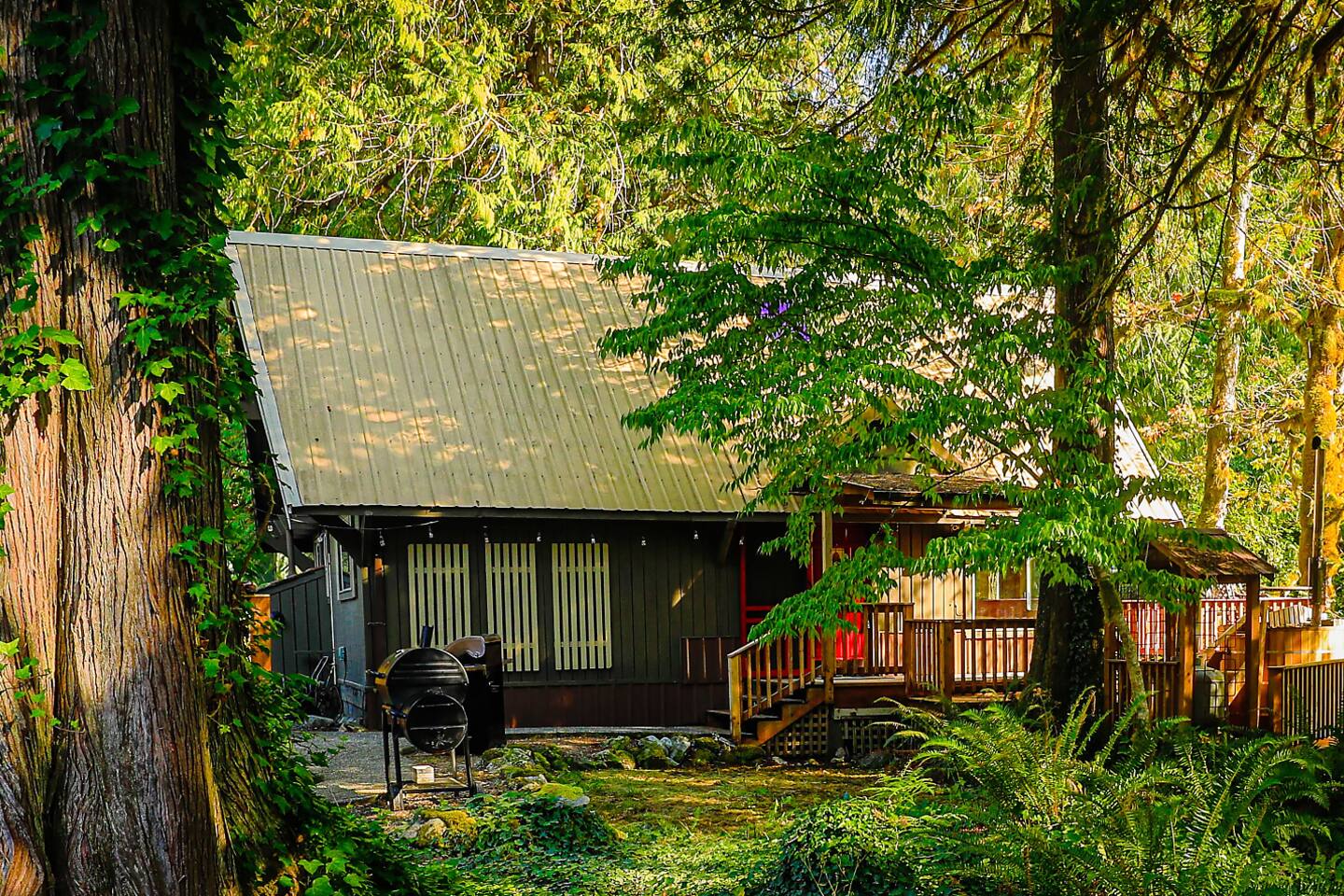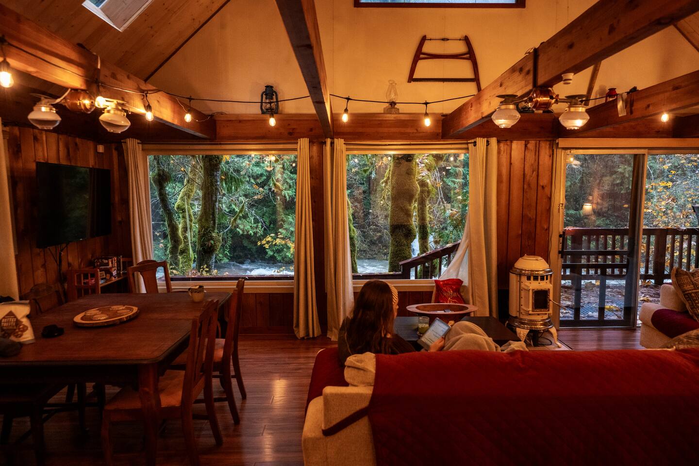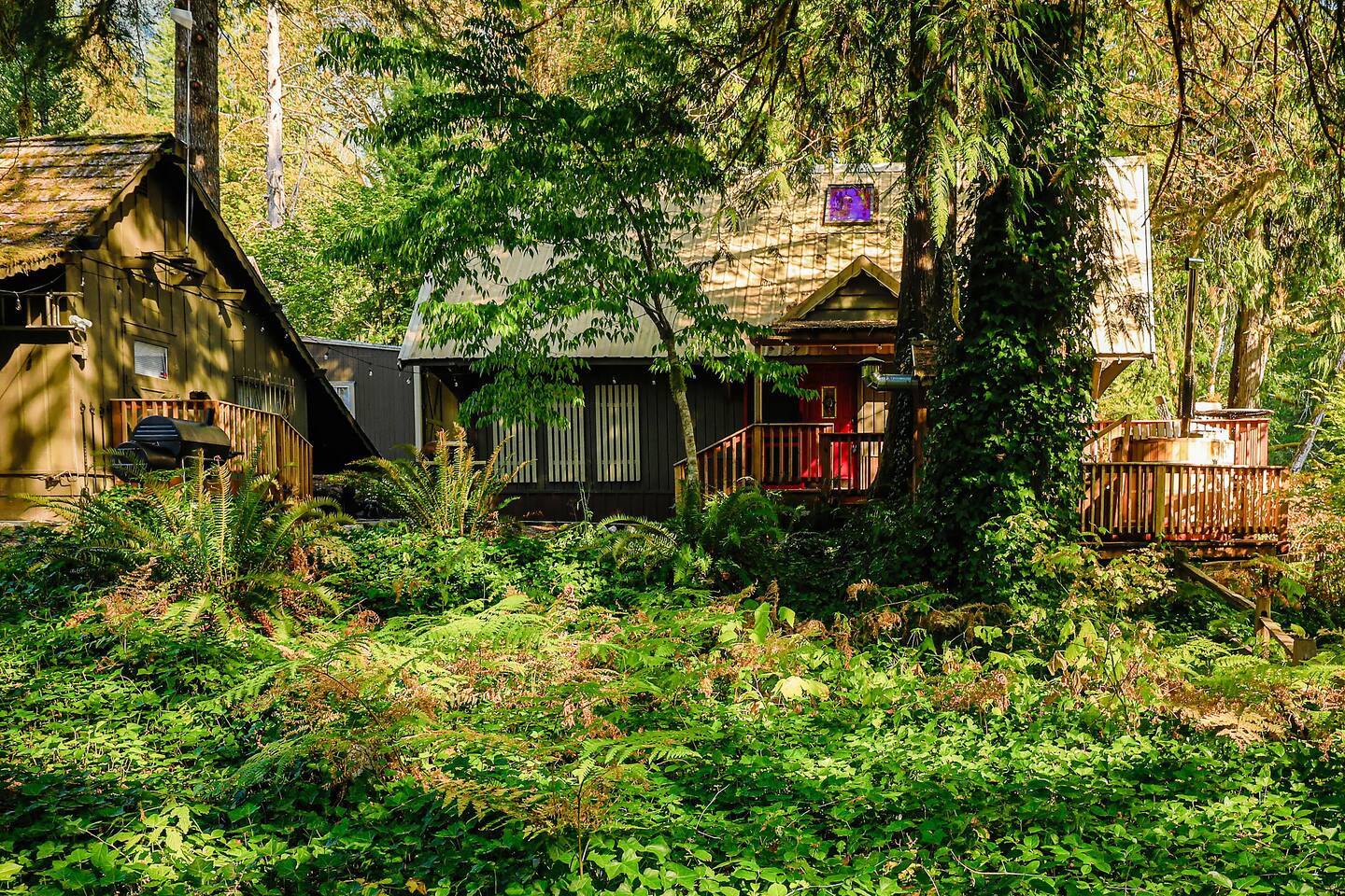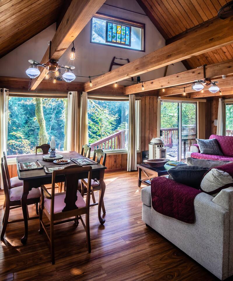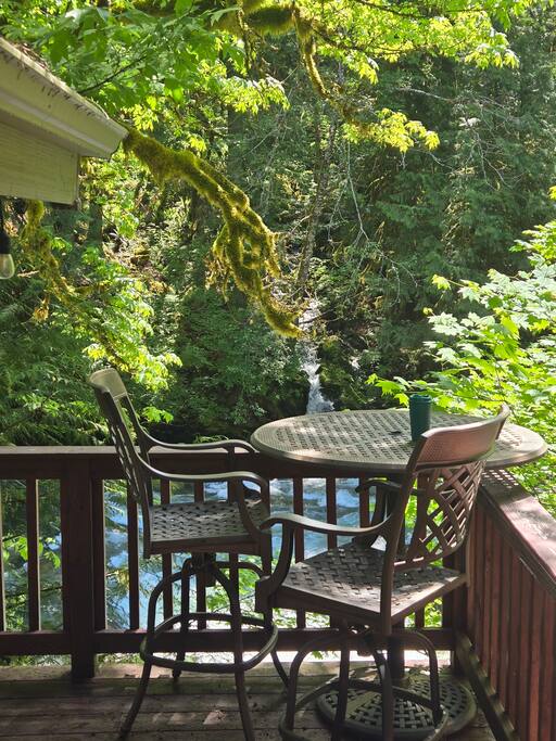 Tucked into a private nook of mature trees, enjoy a view of the Cascades River while you relax after exploring the incomparable North Cascades. Whether out on the deck experiencing the wild and scenic Cascade River with a morning coffee or under the stars from the 3 person wood fired hot tub, this is a river cabin like no other. Enjoy plenty of room for the family to stay comfortably with high speed internet, streaming entertainment and board games while maintaining the off-grid cabin feeling.