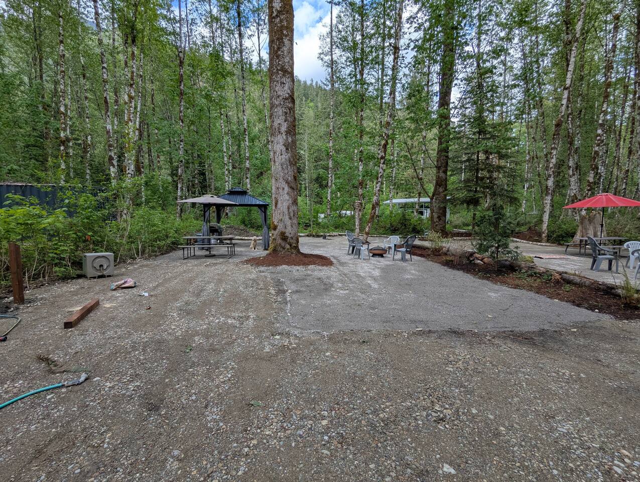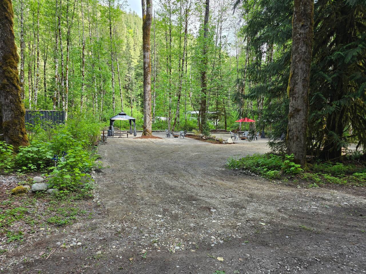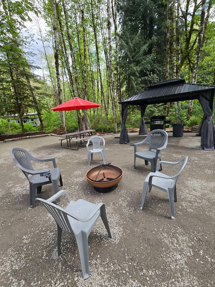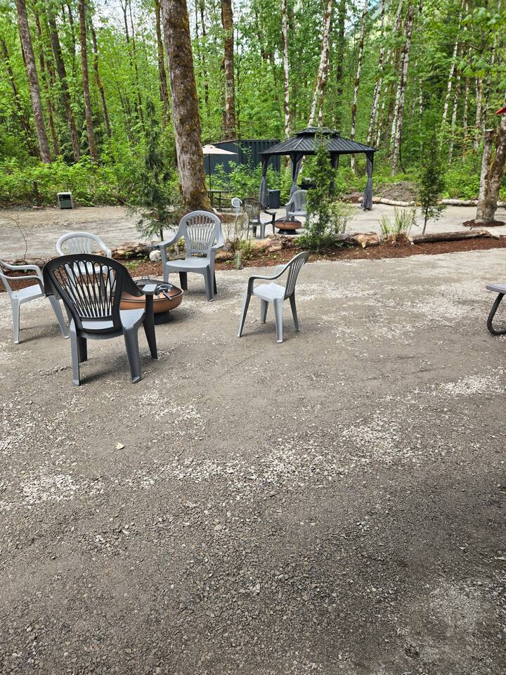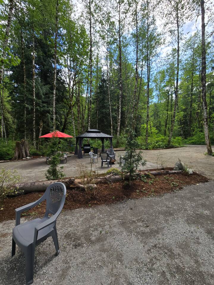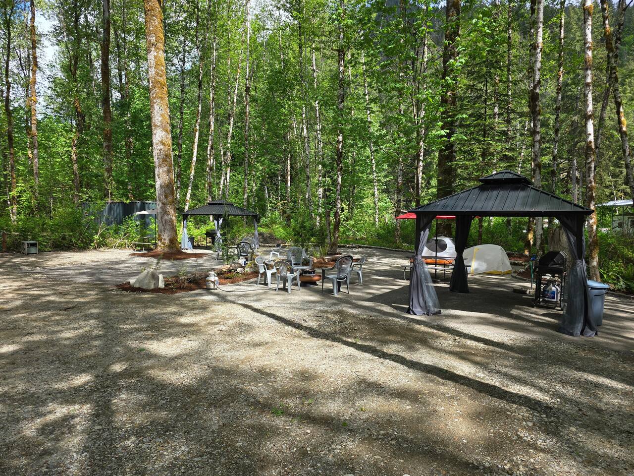 In the heart of the Cascade River Park, a gated off grid community, enjoy this campsite near the Little Boulder Creek and the wild and scenic Cascade River. Bring your tent, sprinter van or RV to stay at this double sized campsite with level areas for any sleeping set up in this camping neighborhood. Enjoy the hard topped gazebo, a picnic table, natural fire pit for campfires when permitted, propane fire ring, propane grill. Stay where the creek whispers and the Cascades call!