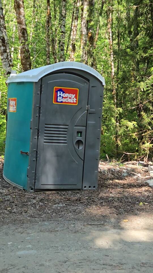 A community supplied porto potty is a short one minute walk from the camp. Restrooms with flush toilets and running sinks are a 20 minute walk or 2 minute drive.